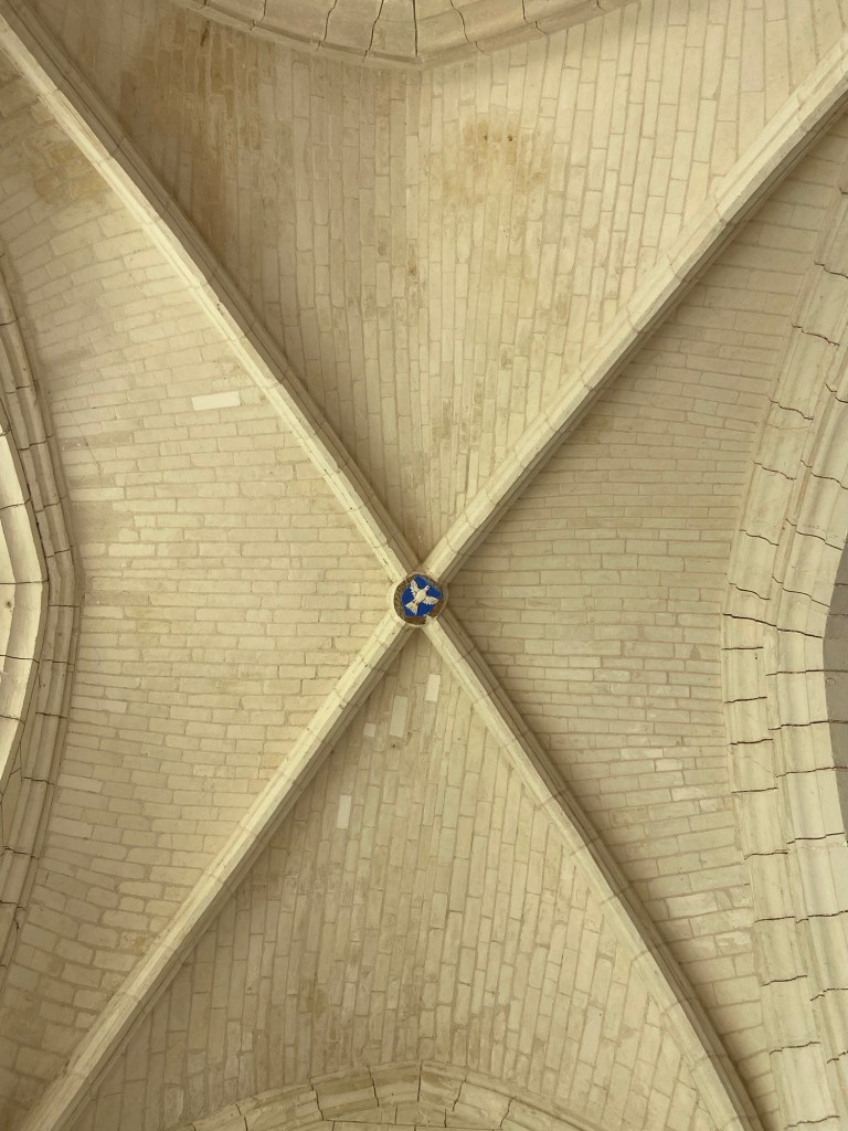 Looking up at the vaulted ceiling I saw gazing down at me the dove of peace in a single painted boss.