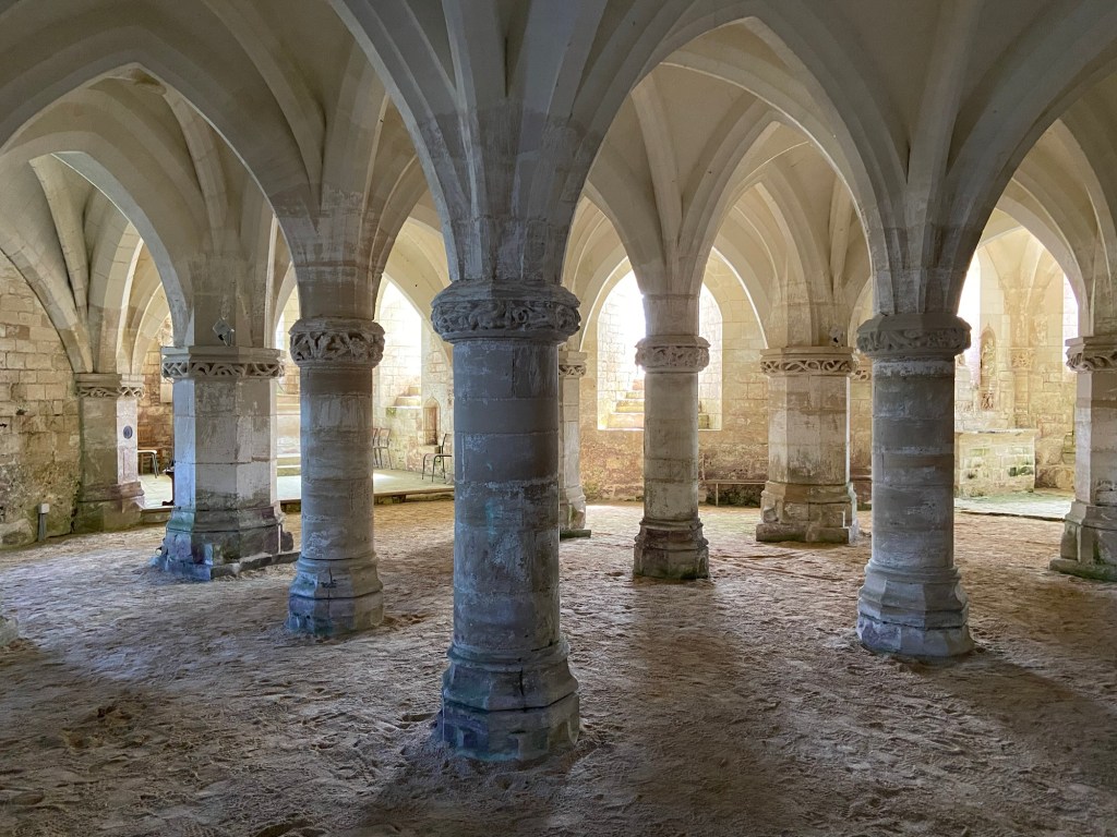 The lower church is much older, and is accessed from an exterior stone staircase. It is a crypt dating from 1035, almost a thousand years old. It was consecrated to St Stephen by St Thomas à Becket, the English martyr, the site of whose murder I had seen in Canterbury Cathedral on the day I set out on this pilgrimage, and I felt a powerful connection — a stronger one here perhaps, in such a naked but austere space; one that felt far more medieval in many ways than the cathedral at Canterbury where the accretions of a thousand years stand between us and him.