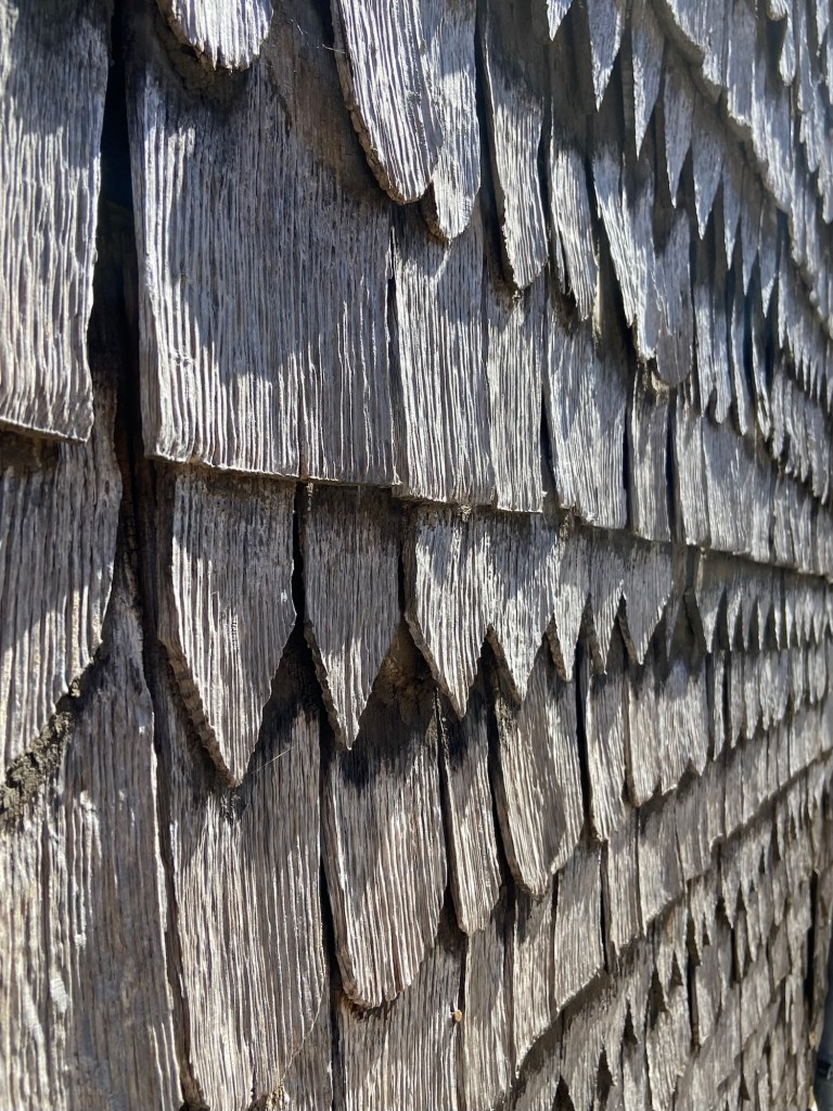 and on the sides of one house, the beech shingles that had been a feature of yesterday’s churches but which had been too high to see properly.