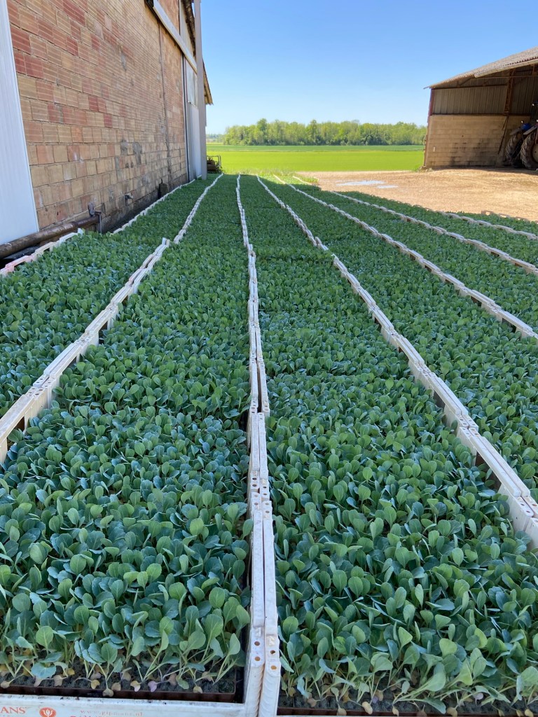 Having recovered somewhat, I shouldered my pack again and set off, past a ‘choucrouterie’, which googling informs me is a place where they might be making industrial quantities of sauerkraut, but they are also growing it too, as these gazillions of seedlings needing planting out (by hand in the sun) seemed to attest.