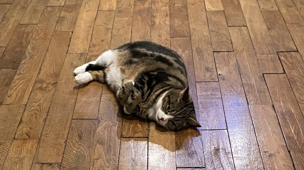 These ones are young yet and not great egg producers, but I got the feeling that it wouldn’t matter even if they never produced anything because the chickens are great family pets, like the two beautiful cats, mother and daughter.