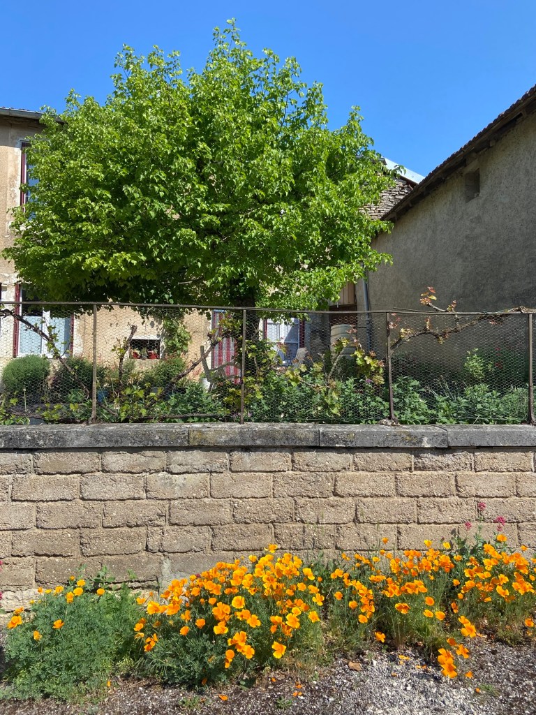 My AirBnB host for the night was a vigneron, a small-scale local wine producer for whom the gîte is a side hustle.  I could see from way down the street a large sign saying ‘DÉGUSTATION’, which I took as a very good omen.  Pascal was in a covered yard area by a sort of a garden, heating metal until it glowed in a small forge with a turning handle to pump in air and heat the coals red hot.  He had a huge vintage anvil on which he hammered the metal flat. ‘I’m making a rose,’ he said.