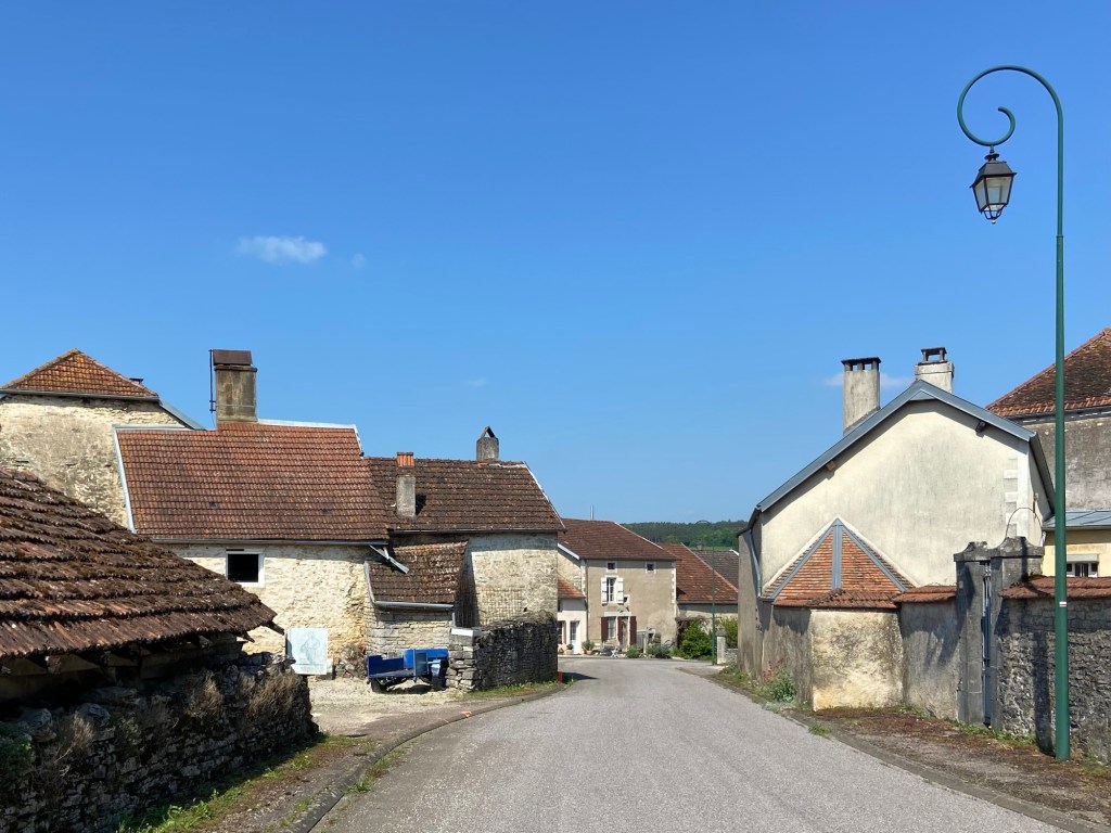 I have now not only come into a new department, the  Haute-Saône, but I have crossed the watershed. Before now all the rivers (bar the most recent Resaigne along which Grandchamps and Maâtz and Coublanc were all threaded like beads on a necklace) had flowed eventually into the Seine and out into the Channel, but now the rivers all drain into the Rhône and their waters flow into the Mediterranean. It felt like something of a watershed for me also.