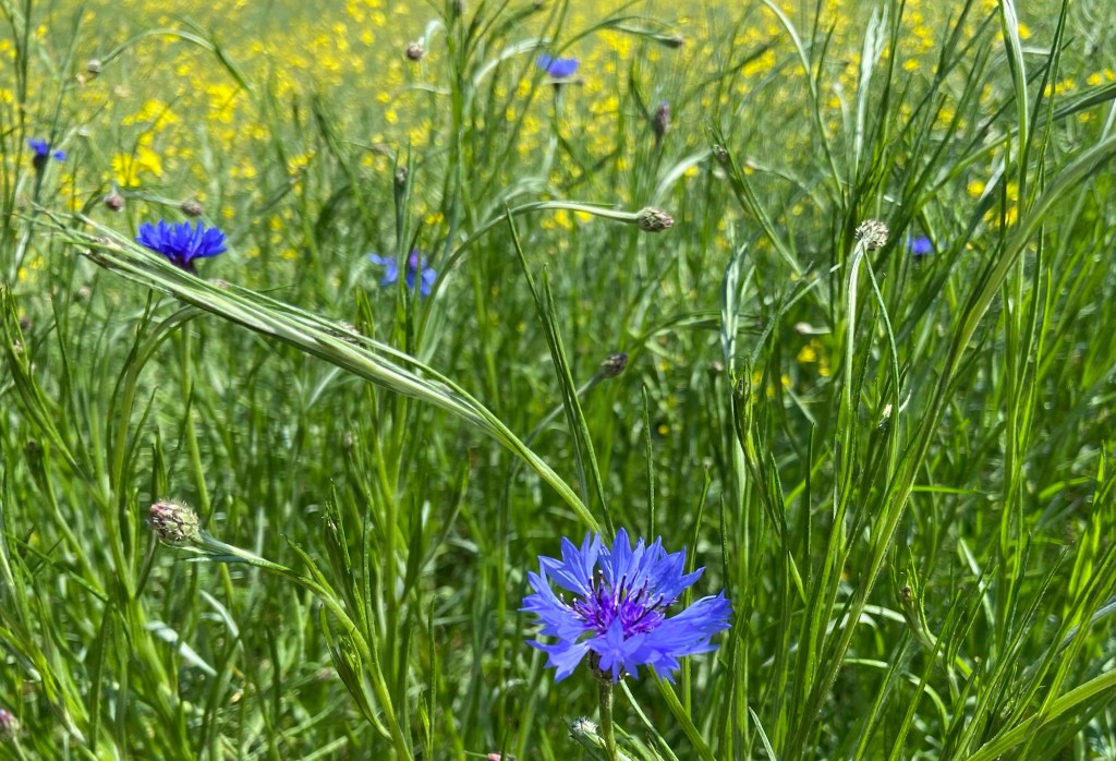 As if to celebrate the fact, here was a new wildflower. One of my favourites: the first cornflower of the season. The flowers open with the sun and are gone by the late afternoon. They are renewed every day throughout the summer with a seemingly endless supply of buds.