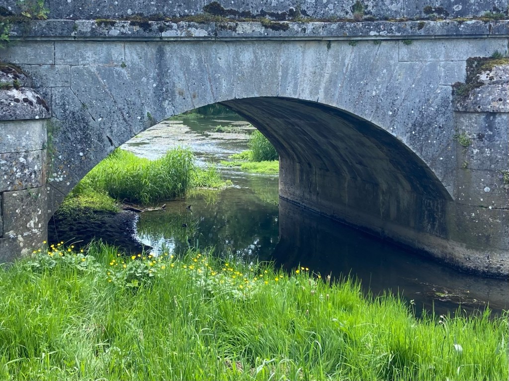 and over a stone bridge made of huge limestone slabs, crossing the Resaigne river where it joined forces with the Salon.