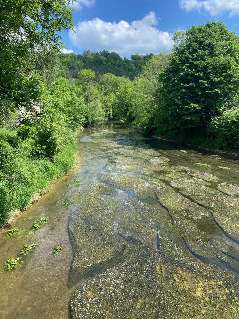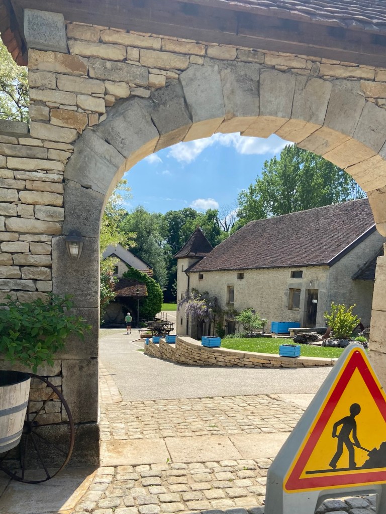 The river bent towards the path (or vice versa) at the site of an old mill which is being converted. It’s clearly someone’s home, so I didn’t want to trespass. Another walker on this path who had overtaken me in Leffond clearly didn’t have the same compunction, and I saw him on the property taking photographs of the watermill. I walked on by rather quickly.