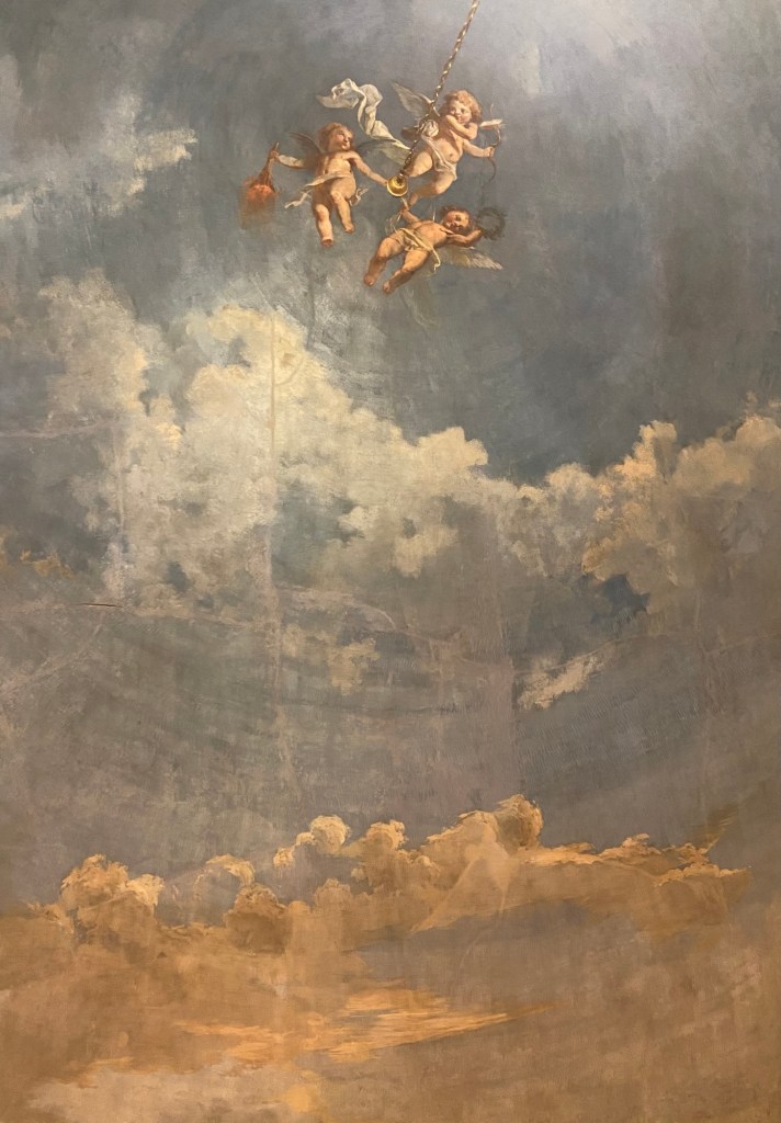 Champlitte is twinned with a town in Mexico, and one of the first exhibits was a video of the twinning festivities, everybody dressed up in traditional Mexican and French costume with a lot of drinking and singing and dancing, the two mayors presiding. I had been told by Natalie to go to see the room with wallpapers of scenes of colonial Mexican life and I duly did — it made me think of the wallpapers of Indian jungle scenes I had toyed with putting in Oscar’s room (which needs a total transformation) in between the 17th century beams.