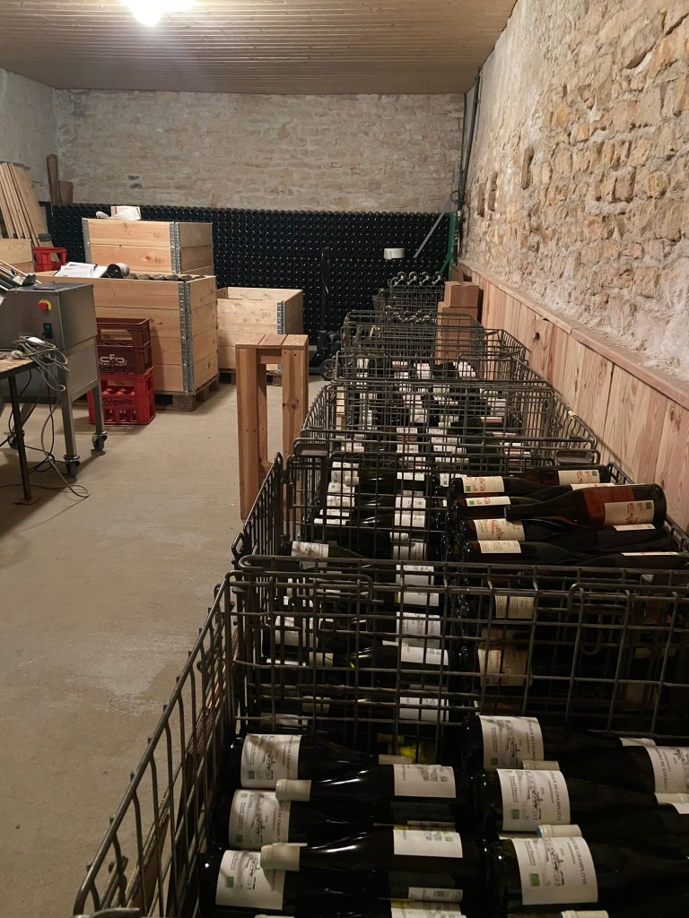 Pascal said I could come down at 6 o’clock and join in with a dégustation, so I duly presented myself at the door of the cave where a couple from Paris had been brought by a local friend to try the wines.