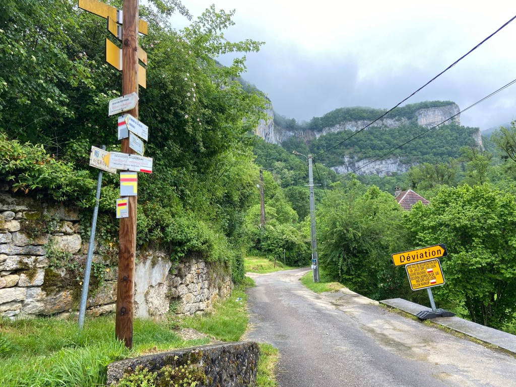 The gorge path must be frequently closed: internet searches last night for a map of the diversion to try and gauge distance and height to help me plan the day had yielded nothing except many references to closures in 2022 and 2023. I realised that they must keep the diversion path properly signposted as an alternative route to the Source of the river Loue, and simply put out a few extra large signs down by the river in Mouthier Haute-Pierre to funnel walkers onto it.