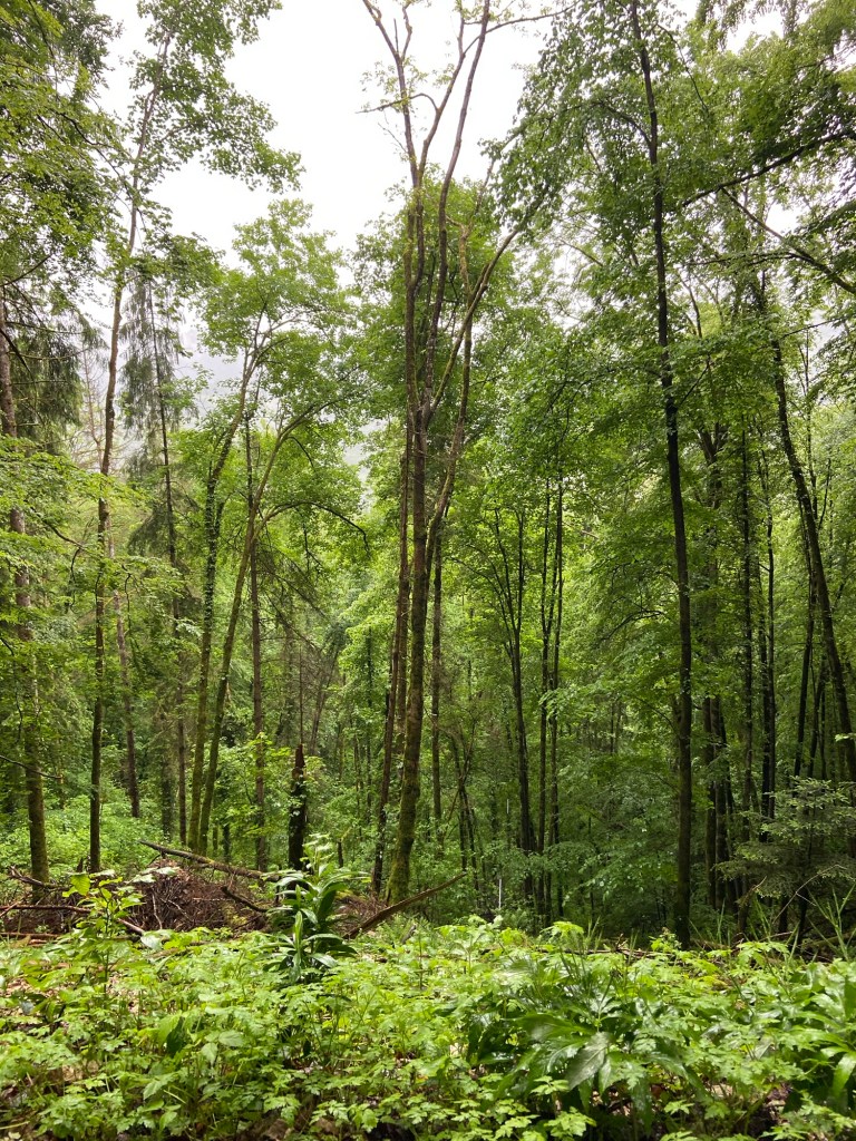 Sometimes the thick bed of needles was brightened by the startling green of new growth at the tips of the nascent branches of seedlings, but mostly it was dark and gloomy and very, very wet.