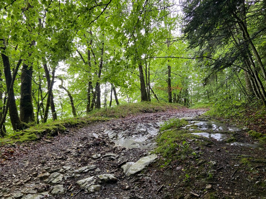 At this junction the Francigena took a much smaller, woodland path that wound now rootily up and down gentler beechwood slopes.