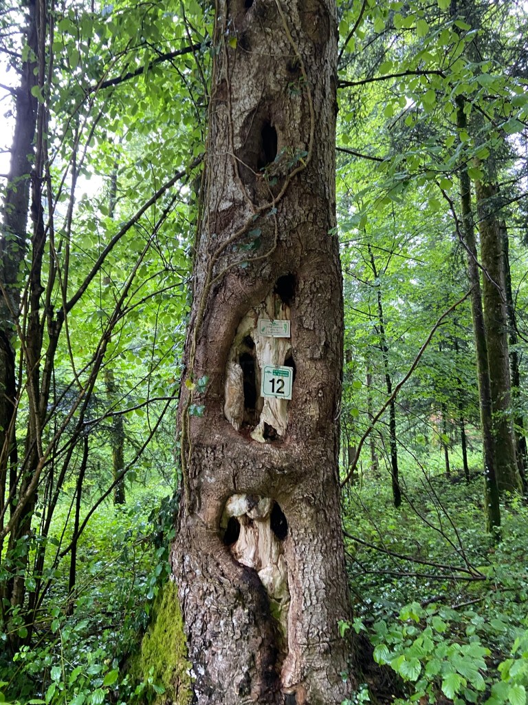 And then I left the meadows behind, climbing up into a plantation woodland, not boring at all, for the interesting trees that kept cropping up,