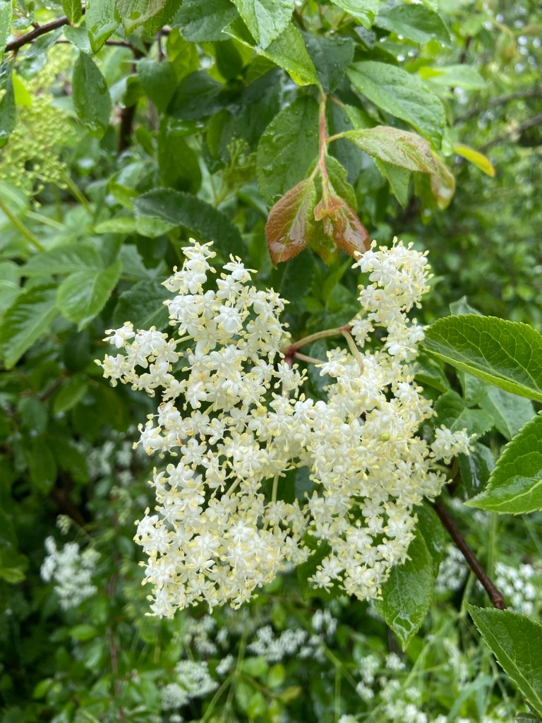 and the first elderflowers of the season — which made me think unfailingly of Stephen and Kitty, who have been going out together ever since she was tiny to forage for creamy heads of elderflowers from which to make cordial.