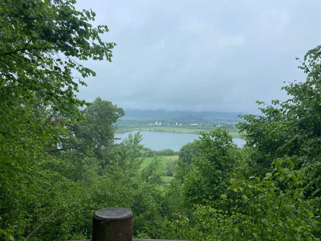 The views back as the track climbed were terrific; would have been more so on a clear day but were nonetheless lovely in the wet air.