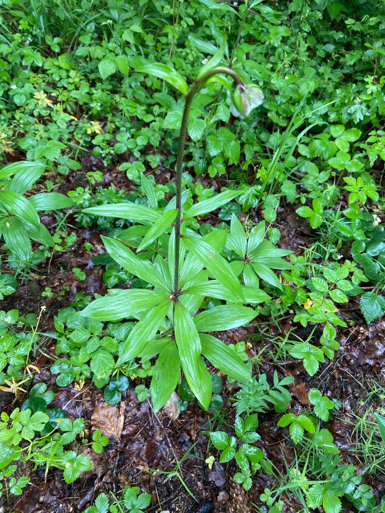 This was a lovely path. Beechwoods are surpassingly beautiful even in the wet, and these ones were dotted about with pink orchids and a narrow-leaved, mat-forming plant with the tiniest of white flowers.