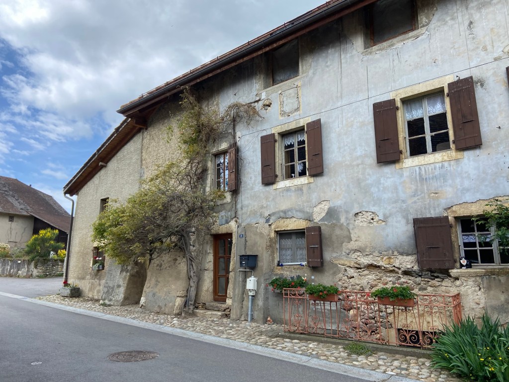 It was two o’clock and I had started to flag. I had used up all the energy from my meagre bowl of soup last night, and the oat bar this morning, and I didn’t have much left in the tank. Rookie error, to be so underfuelled. A few hundred yards out of the woodland I realised that I had turned in the wrong direction when I had reached the road and I stood there for a while, feeling that I simply didn’t have the energy to retrace my steps. I considered a shortcut, looking at the route overview on the map, and seeing that the official route traced a wide arc, connecting several villages, to arrive in Cossonay. I could see back roads on the map which would instead take me pretty much directly there, so I decided to bail out of the Francigena route for the afternoon and use what energy I had left to get to Cossonay the shortest way.