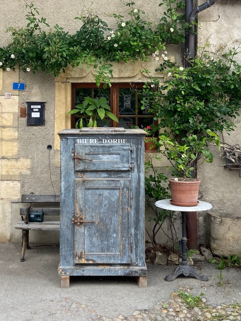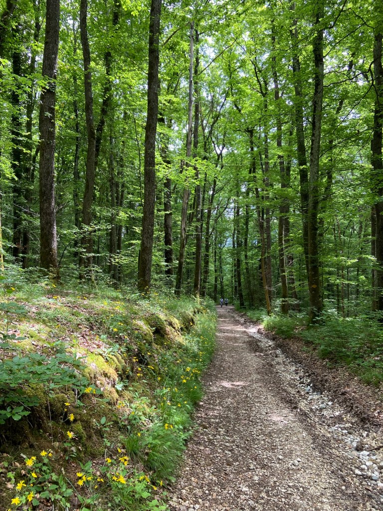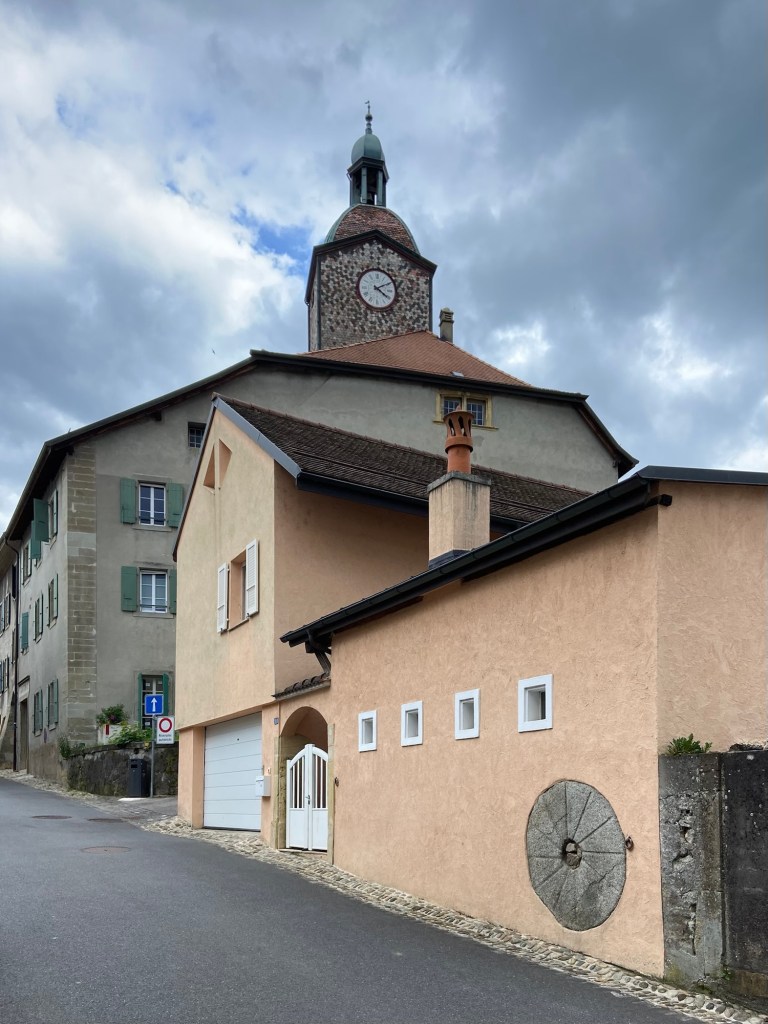 On the other side of the next stretch of woodland (where wild lily of the valley was still in flower) was the next village, Romainmôtier, described as ‘serene’ in the guidebook. It was actually the highlight of the day, by quite some way. It was a mediaeval village, its geographical position tucked into the heart of a steep valley meaning that it had stayed quite small.